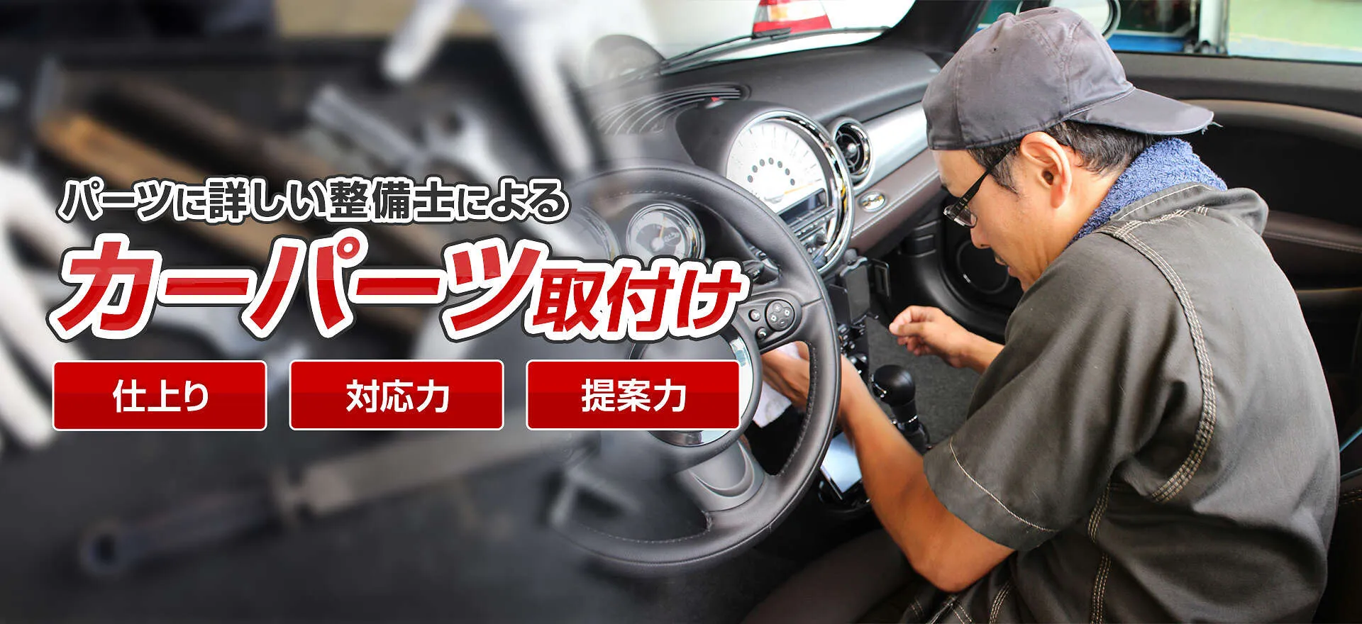 パーツによってはお客様の安全に直結する事もある取り付け・交換作業は、それぞれのパーツの取扱に長けた国家資格整備士が担当いたします。
